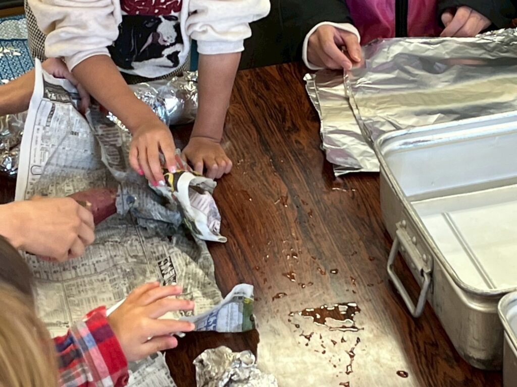 豆まきや工作で遊んだあとは、お待ちかねの焼き芋✨