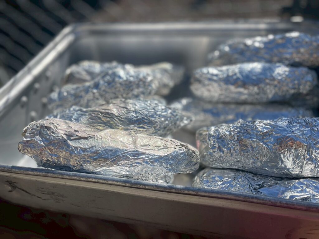 焼く作業は屋外で担当者が行い、炭火を使って焼き芋を調理しました。
